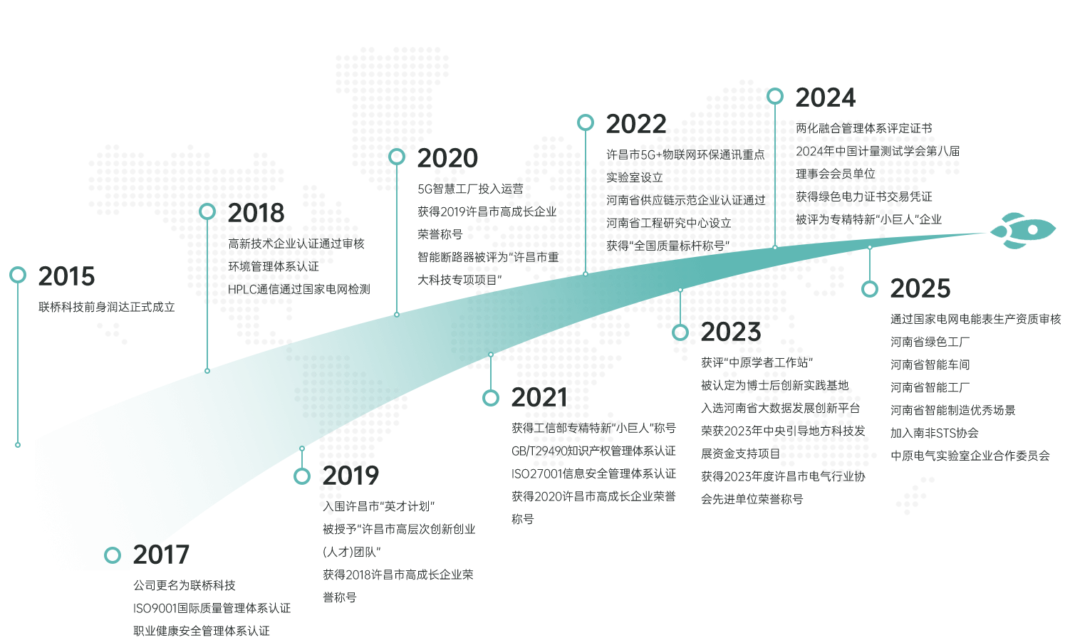 公司自2015年成立以来,逐步形成了以“物联网通信技术及产品的研发、生产和销售”为主导,电子智能制造、物联网通信、智能终端、管理云平台四大业务格局;陆续成立了许昌、郑州、深圳三大研发中心、低压电力载波通信技术创新中心及5G联合创新实验室,联桥科技将为客户提供更优质的产品服务与更成熟的行业解决方案,持续深化改进,规范流程,创新引领,科技赋能!